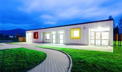 The kindergarten consists of 25 modules and has a floor area of 390 m2 . The building was designed specifically for children, which is evident from how colorful and cheerful it turned out, which is clear proof of how unique and customer-specific buildings can be created from modular systems.